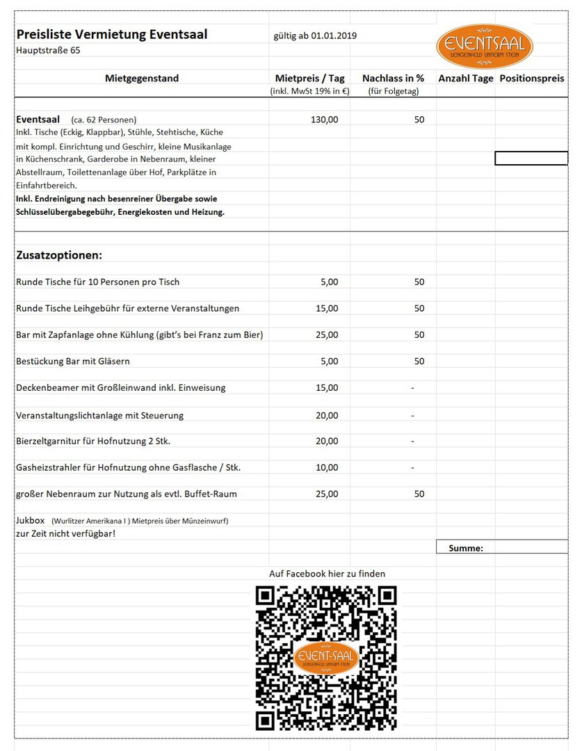 Ab 01.01.2019 gilt die unten abgebildete, neue Preisliste.